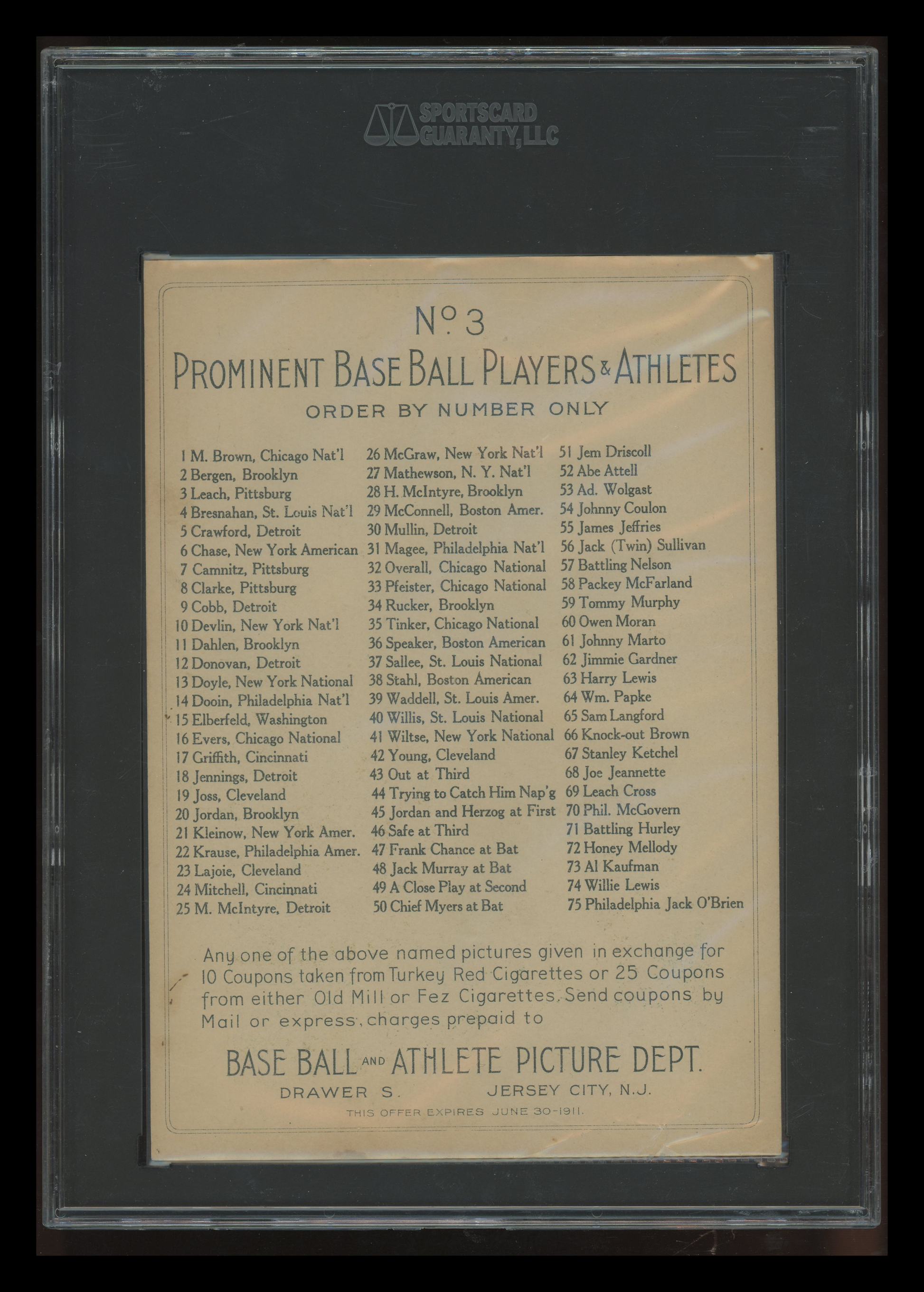 You are purchasing a 1910 T3 Turkey Red Tommy Leach #3 SGC 5. You will receive the exact item in the photographs. Thank you for shopping with Gross Vintage Baseball. Listed With Mascot.