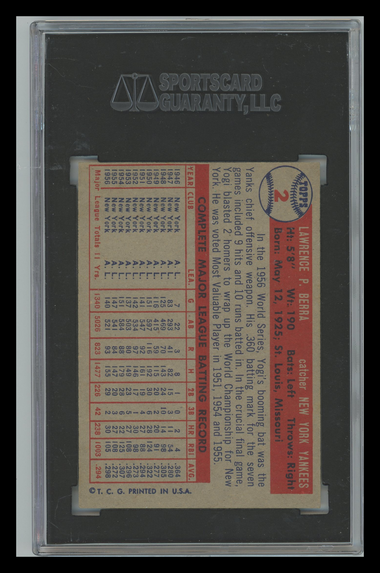 You are purchasing a 1957 Topps Yogi Berra #2 SGC 7. You will receive the exact item in the photographs. Thank you for shopping with Gross Vintage Baseball. Listed With Mascot.